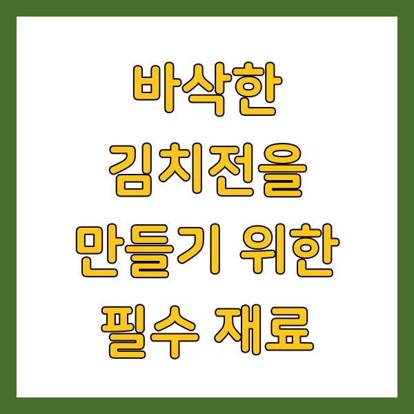 바삭한 김치전을 만들기 위한 필수 잱료들을 준비해두면 집에서도 쉽게 맛있는 김치전을 즐길 수 있어요. 신선한 재료와 조리 방법을 고려하면, 누구나 부담 없이 홈메이드 김치전을 즐길 수 있답니다. 완성된 김치전을 한입 베어물 때의 쫄깃한 식감과 풍부한 맛을 경험하면서 특별한 한끼를 즐겨보세요.
