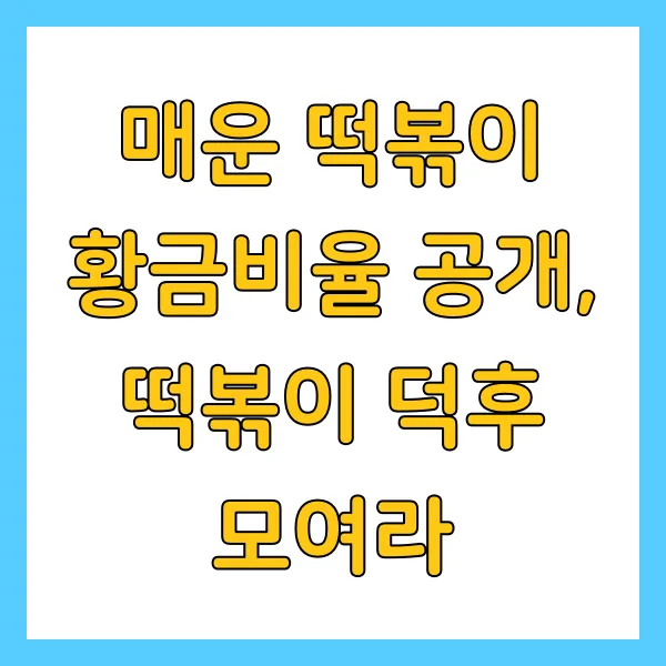 황금비율 의 중요성은 요리에서도 중요한 역할을 합니다. 특히 매운 떡볶이를 조리할 때, 재료의 비율이 적절하지 않으면 원하는 맛을 내기 어렵습니다. 황금비율 이란 재료들 간의 최적의 비율을 의미하며, 이를 맞추는 것이 최상의 맛을 만들어냅니다.