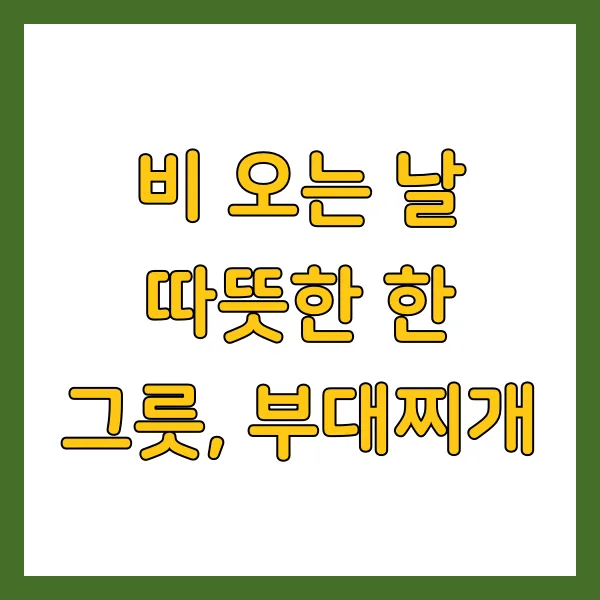 이렇게 정통 부대찌개를 즐기실 수 있어요. 집에서 간편하게 만들 수 있는 이 맛난 음식으로 비 오는 날 분위기를 더욱 풍성하게 만들어보세요!